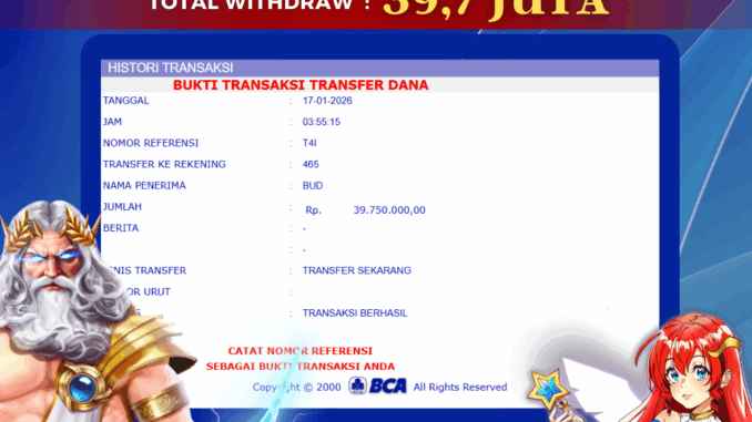 Bukti transfer yang dapat anda lihat adalah bukti SAH / VALID yang langsung di dapatkan melalui bukti transaksi dari Bank yang digunakan untuk pengiriman dana pada rekening pemilik user id. Terima kasih kami sampaikan kepada para pengguna setia BOLAGILA yang telah menggunakan situs kami, sebagai Bandar Terpercaya yang pastinya membayar semua kemenangan member hingga lunas. Apakah BOLAGILA PENIPU ? Reputasi “BOLAGILA TERPERCAYA” sudah sangat melekat.