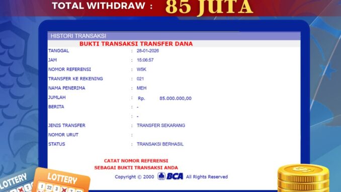 MEMBER BOLAGILA MENERIMA PELUNASAN JACKPOT TOGEL DI SYDNEY LOTTO Rp 85.000.000,- LUNAS