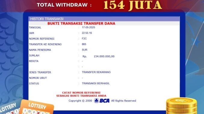Bukti transfer yang dapat anda lihat adalah bukti SAH / VALID yang langsung di dapatkan melalui bukti transaksi dari Bank yang digunakan untuk pengiriman dana pada rekening pemilik user id. Terima kasih kami sampaikan kepada para pengguna setia BOLAGILA yang telah menggunakan situs kami, sebagai Bandar Terpercaya yang pastinya membayar semua kemenangan member hingga lunas. Apakah BOLAGILA PENIPU ? Reputasi “BOLAGILA TERPERCAYA” sudah sangat melekat.